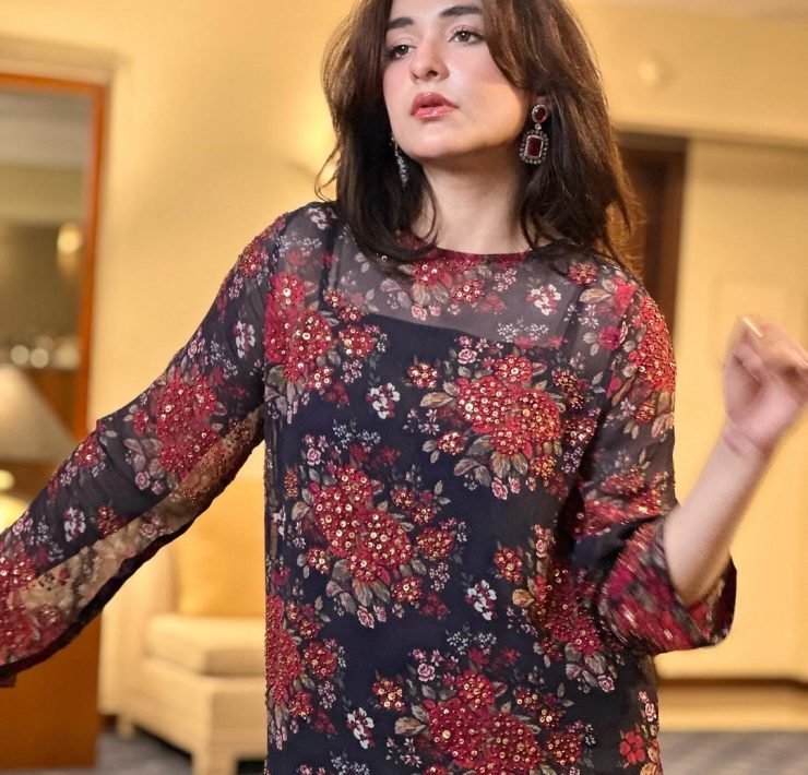 The black outfit that Mahira Khan wore at one of the movie premiers made us drool over this look. A black sequined saree with a cape makes us fall in love with her style sense. It is one of the best outfits that our actresses have worn at movie promotions.