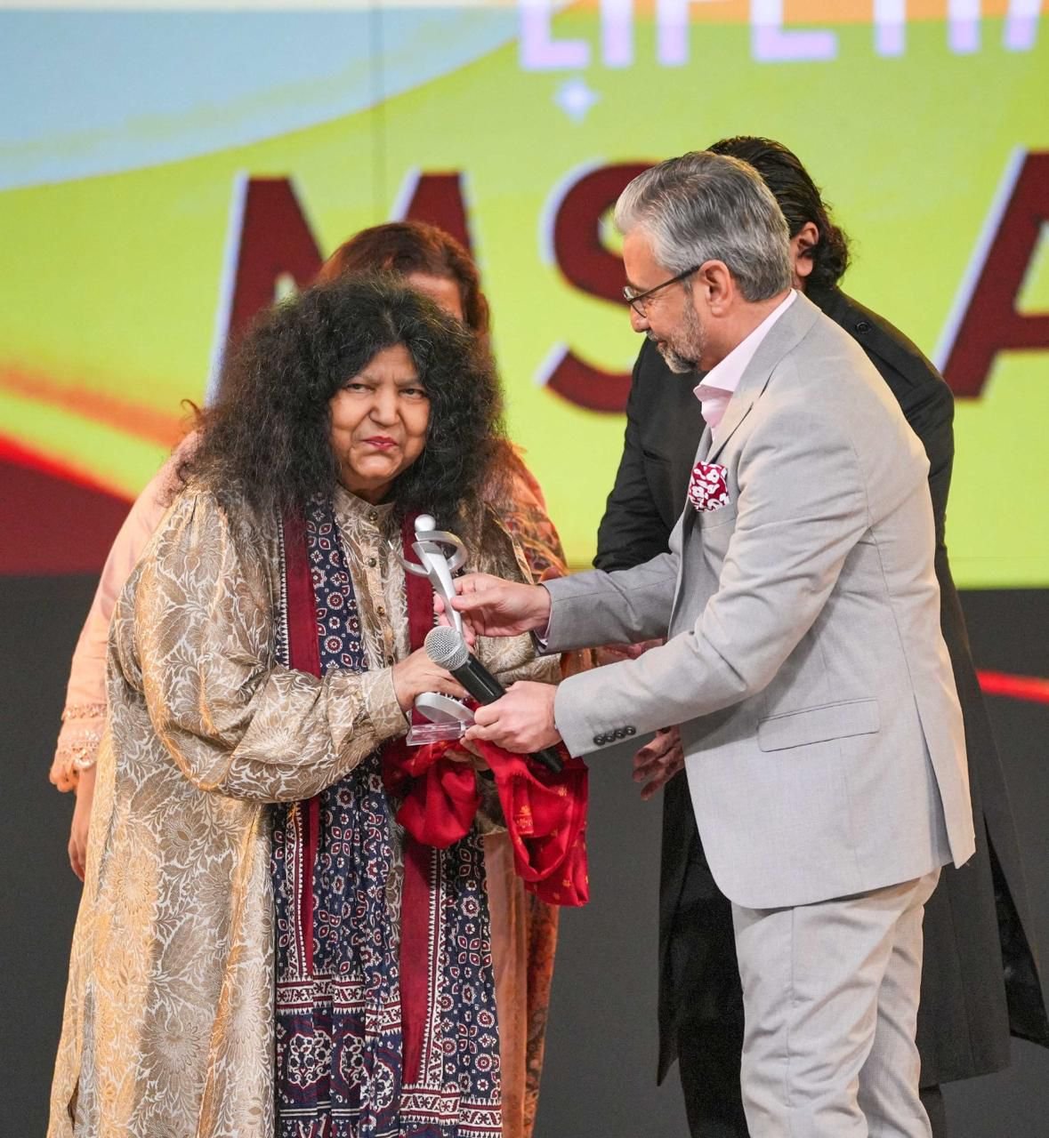 The stage further lit up with stellar acts by Hasan Raheem, Nayel and Aashir Wajahat, Nehaal Naseem, and Afusic, culminating in the evening’s most powerful moment: a spellbinding performance by the living legend Abida Parveen. She was honored with the Unilever Chairman’s Lifetime Achievement Award, presented by Chairman Unilever, Amir Paracha, with a soulful narration delivered by Adnan Siddiqui and music maestro Faisal Kapadia.