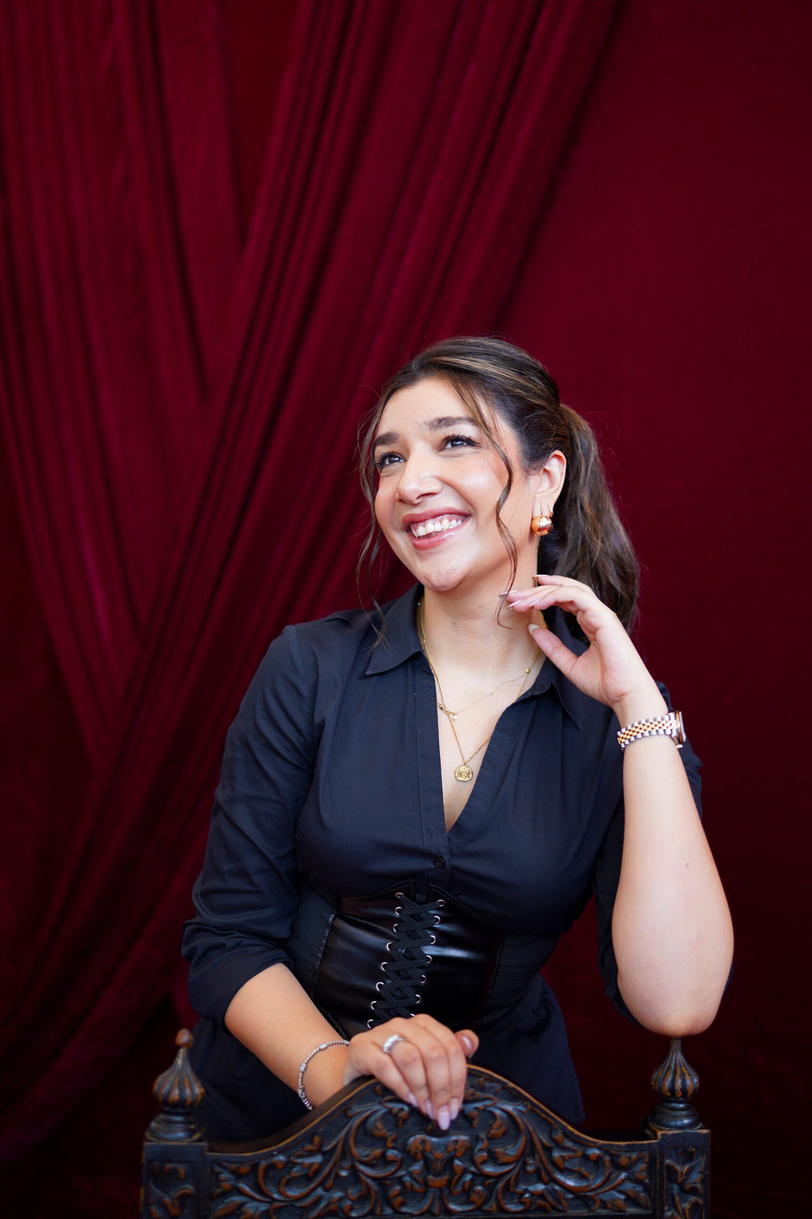 Lajwanti’s presence at the event was nothing short of mesmerizing. Their exhibit, set against a regal maroon velvet backdrop adorned with gilded gold frames, was an experiential journey into the art of couture. The walls, draped with luxurious curtains, housed both still images and videos of their iconic bridal ensembles, a live session featuring 4 artisans crafting a bridal piece, offering visitors a rare behind-the-scenes look into the intricate process of creating a Lajwanti garment.