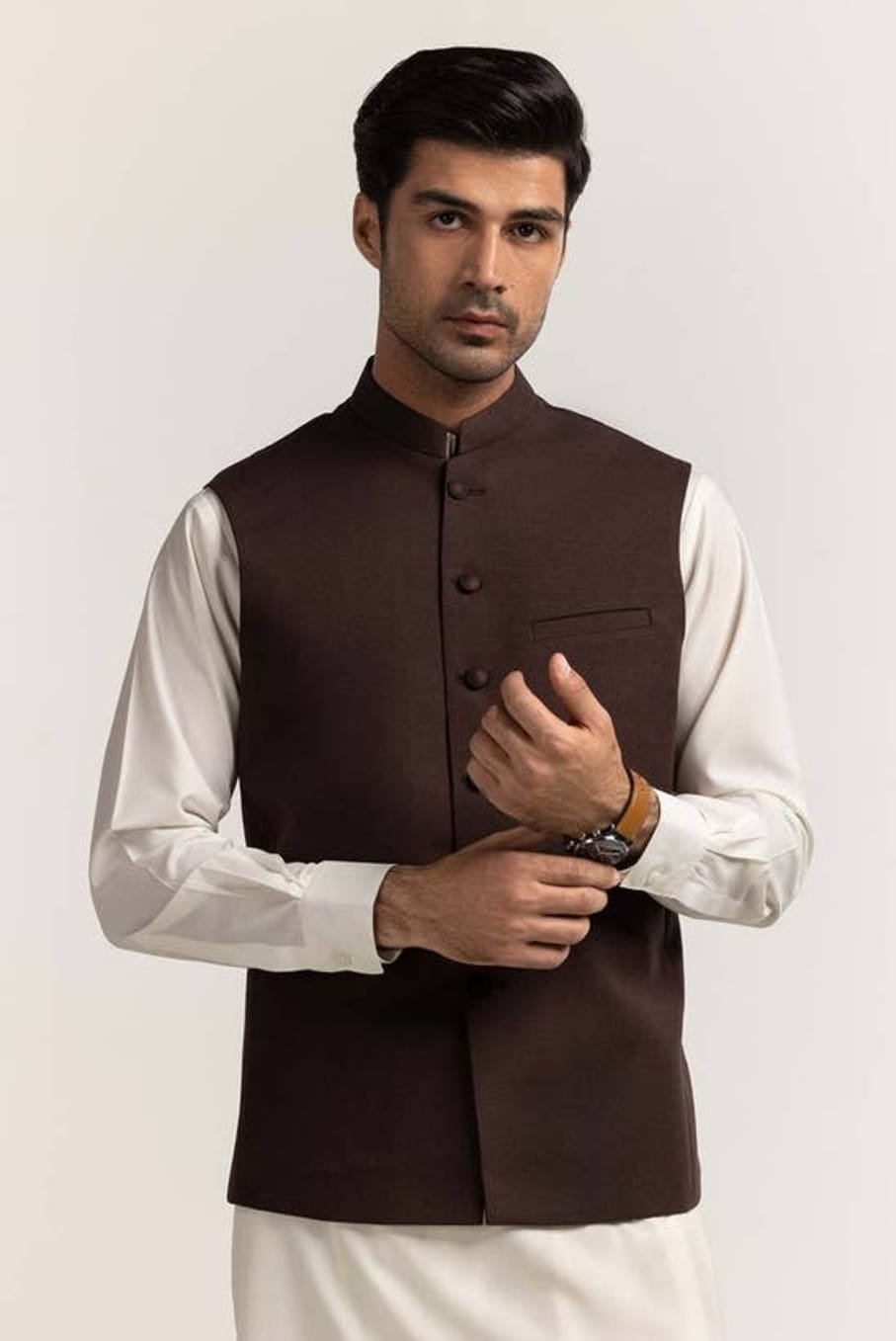 The Brown Basic Waistcoat is the epitome of sophistication. Whether paired with a shalwar kameez or a kurta, this waistcoat adds a polished touch to your look. Its versatile color and classic cut make it a timeless piece that can elevate any outfit, suitable for both casual and formal occasions.