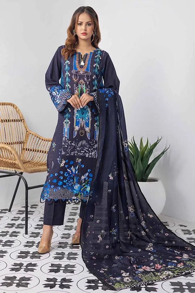 this season explore elegance with Gulahmed’s three-piece printed khaddar unstitched suit. This ensemble, featuring intricate design, promises both style and comfort. The vibrant hues and quality craftsmanship make it a perfect choice for any occasion. Elevate your wardrobe and embrace timeless fashion with this exquisite outfit. Buy now for a captivating look!