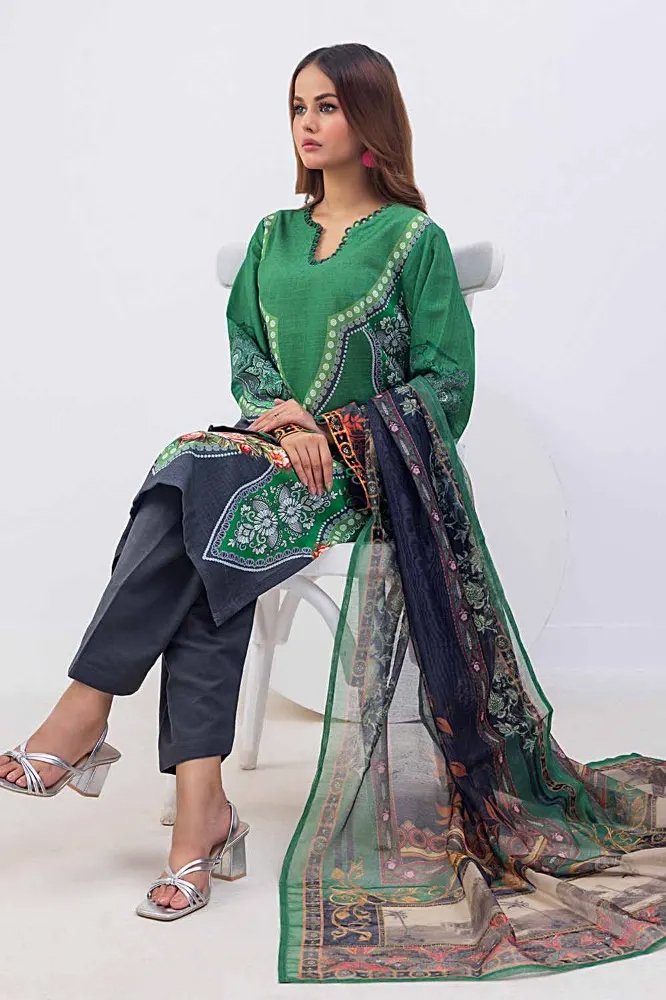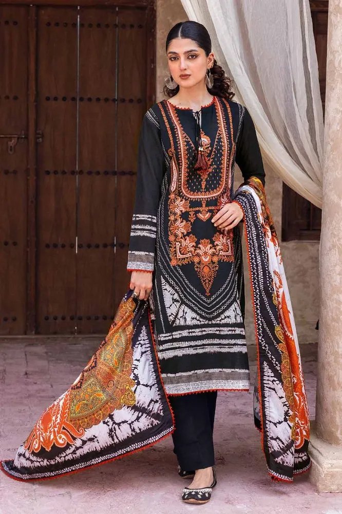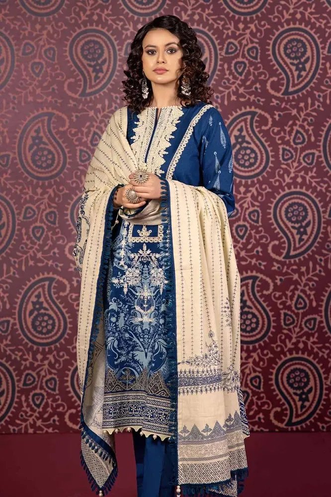 this season explore elegance with Gulahmed’s three-piece printed khaddar unstitched suit. This ensemble, featuring intricate design, promises both style and comfort. The vibrant hues and quality craftsmanship make it a perfect choice for any occasion. Elevate your wardrobe and embrace timeless fashion with this exquisite outfit. Buy now for a captivating look!