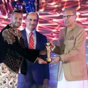 Stepping out of her comfort zone, Mahira Khan wore a breathtaking red dress by none other than Faraz Manan who put all his heart into this! She carried the skirt, blouse, and the jacket perfectly giving an overall comfort meets classy look! From head to toe, everything was on point and perfect about the sequined look. The sequined skirt and blouse give the ideal chic look, paired with the classy jacket that adds glamour and makes the beautiful actress shine! No one could have done better than her.