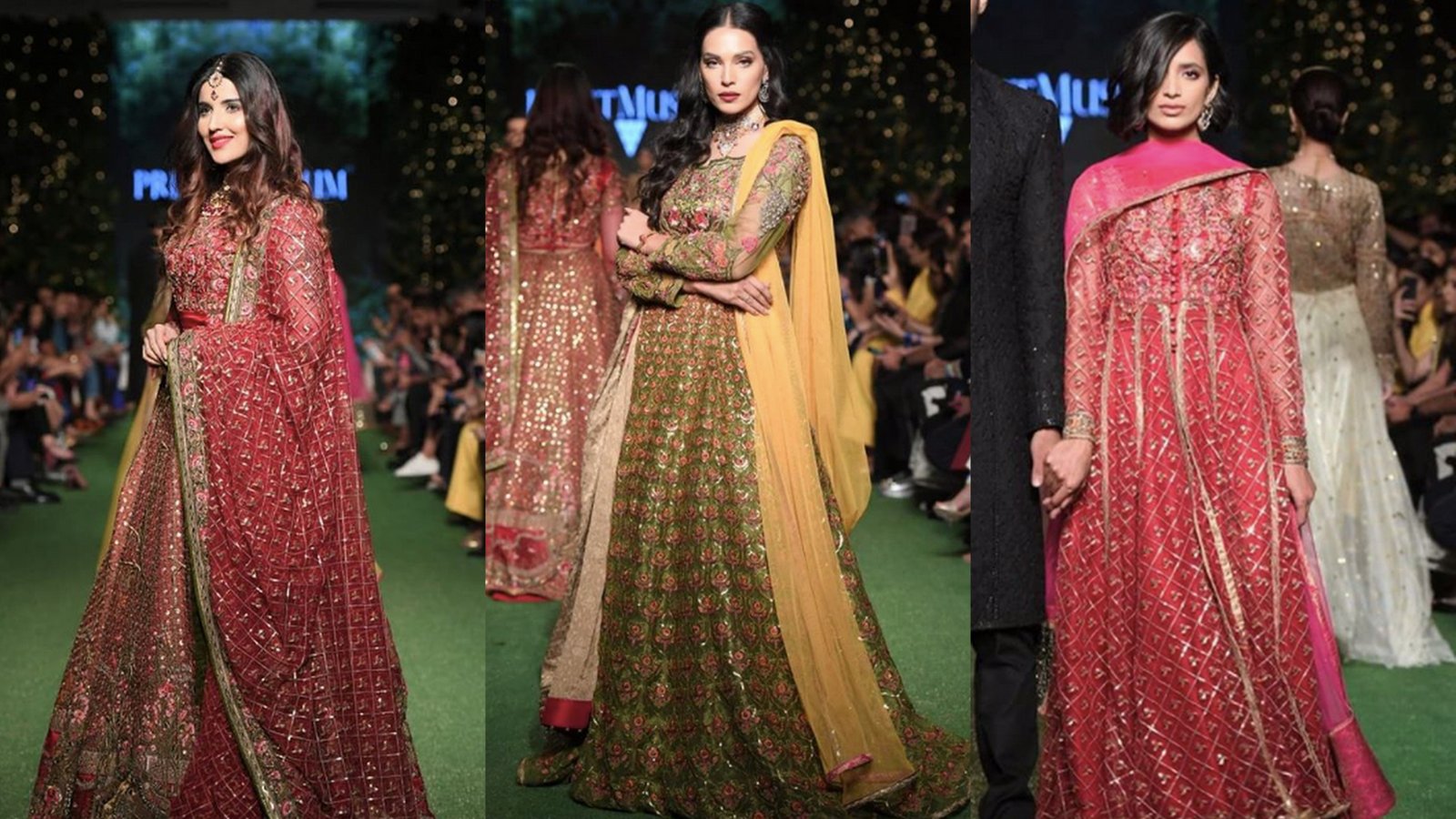 Parwana-e-Husan by FAS Studios was over run with star power, with celebrities like Ayeza Khan, Kubra Khan and Omer Shahzad taking on the runway. The collection plays it safe with mostly light coloured pieces combined with occasional pops of reds and pinks. We’re surprised by how much we’re into the hot pink jacket-pants combo donned by Omer Shahzad! While some of the bridal and formal designs are beautiful, we believe we could have seen more from this designer and a few tweaks on the fit of the outfits would’ve made a huge difference in the way they presented on the runway.