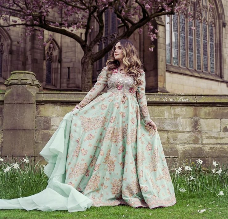 Satisfying her love for matching separates, Zainab wears a beautiful pair of blue floral separates by Sania Maskatiya. She looks like a floral dream from head to toe wearing the perfect attire for the summer season!