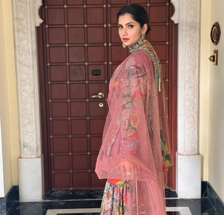 Another glamorous look of the gorgeous is in matching separates by Sania Maskatiya. The trendy floral separates with gorgeous sleeve detailing are a vision to behold on the beautiful commentator. The button shirt and matching pants give off summer vibes as the floral print makes her stand out!
