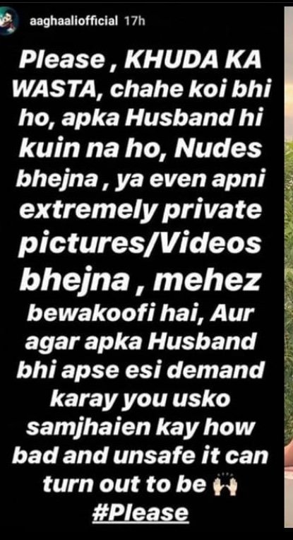 In the light of recent events where a popular singer and an upcoming model fell victim to cyber crime with the release of their personal, intimate photos and videos on social media, actor Agha Ali took to his Instagram story to lend a useful piece of advice: