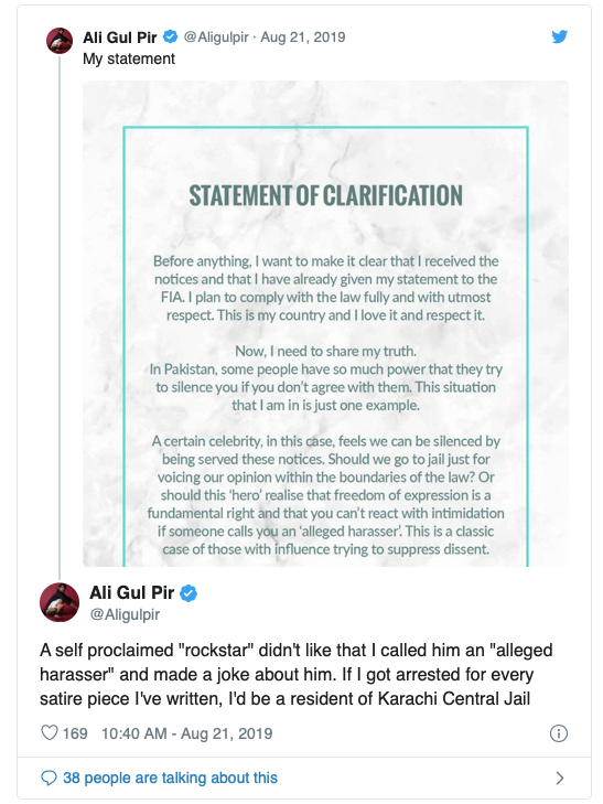 This, for obvious reasons, rubbed Zafar the wrong way and he lodged a complaint with the FIA. Pir was summoned after which he released the following statement:
