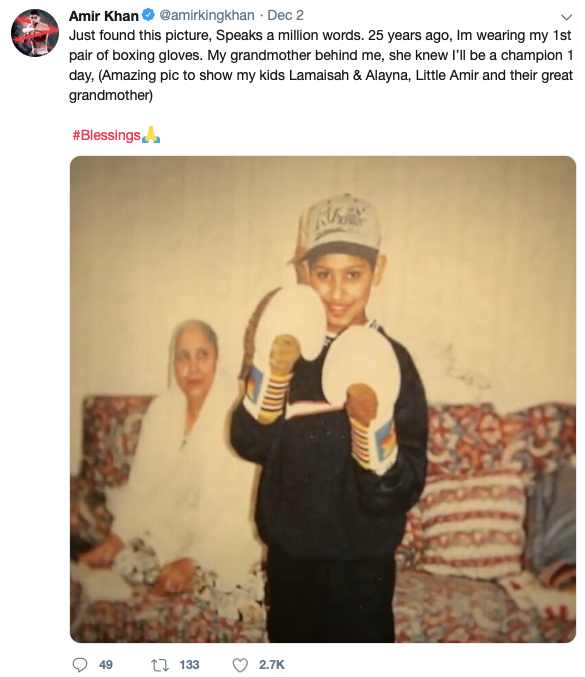 Everyone’s favourite boxer, Amir Khan, recently took to twitter to share a throwback picture of him as a kid with his grandmother and no matter how we feel about him, this made us aww: