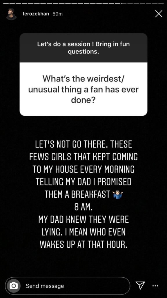 Actor and heartthrob Feroze Khan took to his Instagram account to answer some questions from fans in a rare glimpse into some aspects of his private life.
