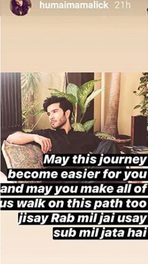 On Sunday, Mrs. Feroze Khan, Alizey, shared an image of the actor and herself on her Instagram story wishing him best of luck for his journey, “May this spiritual journey bring more faith in your life and serve the purpose“. Humaima Malick, Feroze’s sister, has taken to her Instagram to share something along the same lines: