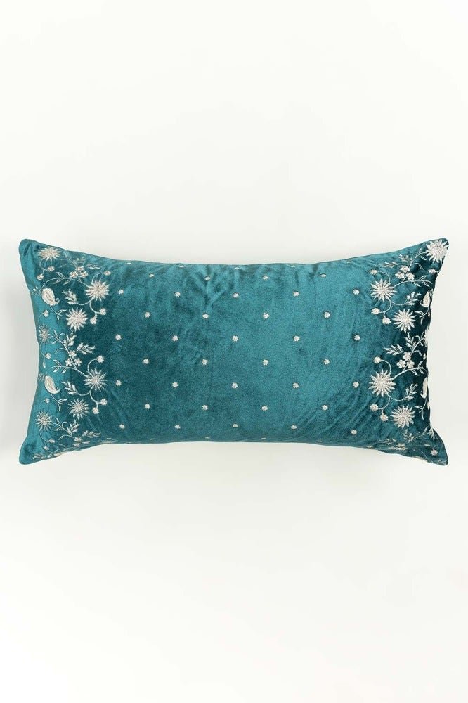 Immerse yourself in luxury with the Sitara Sea Velvet Embroidered Cushion Cover. The sumptuous sea-inspired design, coupled with intricate embroidery, creates a statement piece. Crafted from velvet, this cushion cover not only adds a touch of opulence but also provides a cozy feel. Elevate your decor with the Sitara Sea Velvet Cushion Cover, embodying elegance and comfort. This cushion cover brings a touch of luxury and warmth perfect for winter.