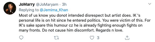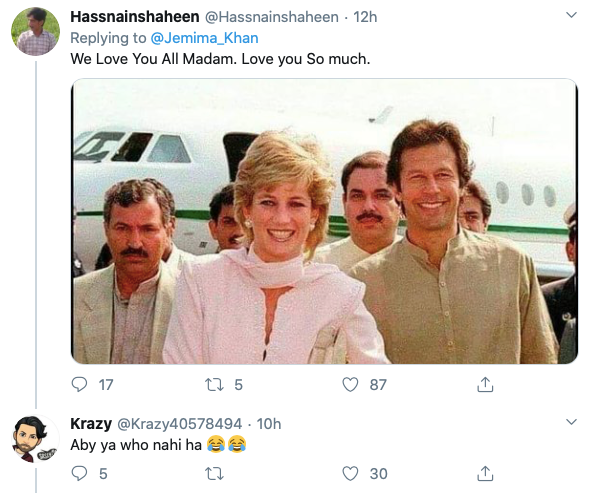 Funny lady and ex-wife to our PM Imran Khan, Jemima Goldsmith tweeted the following in the wee hours of the morning: