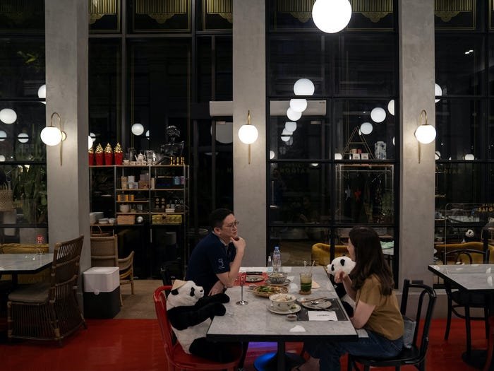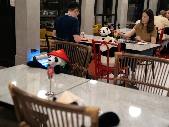 Now, pandas fill the seats at the Vietnamese restaurant in Bangkok.