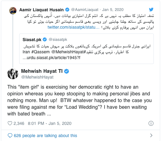 دو جگ میں حال تمہارا pic.twitter.com/61KfYVrOHJ— Aamir Liaquat Husain (@AamirLiaquat) January 27, 2020