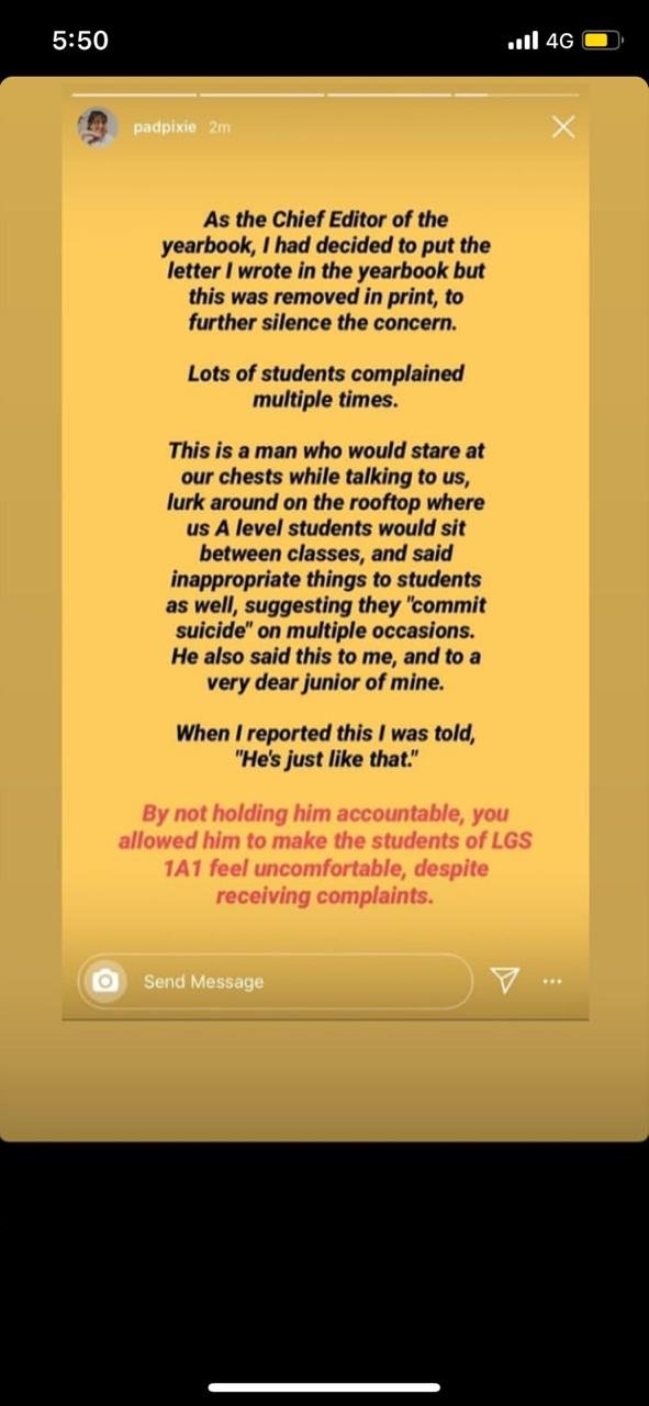 4 faculty members of Lahore Grammar School have been terminated following countless accounts of sexual harassment by current and former students.